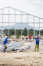 Top: Duquesne Fednard’s factory makes fuel-efficient stoves. Below: New roads in Port-au-Prince. Photos by Pieter van den Boogert